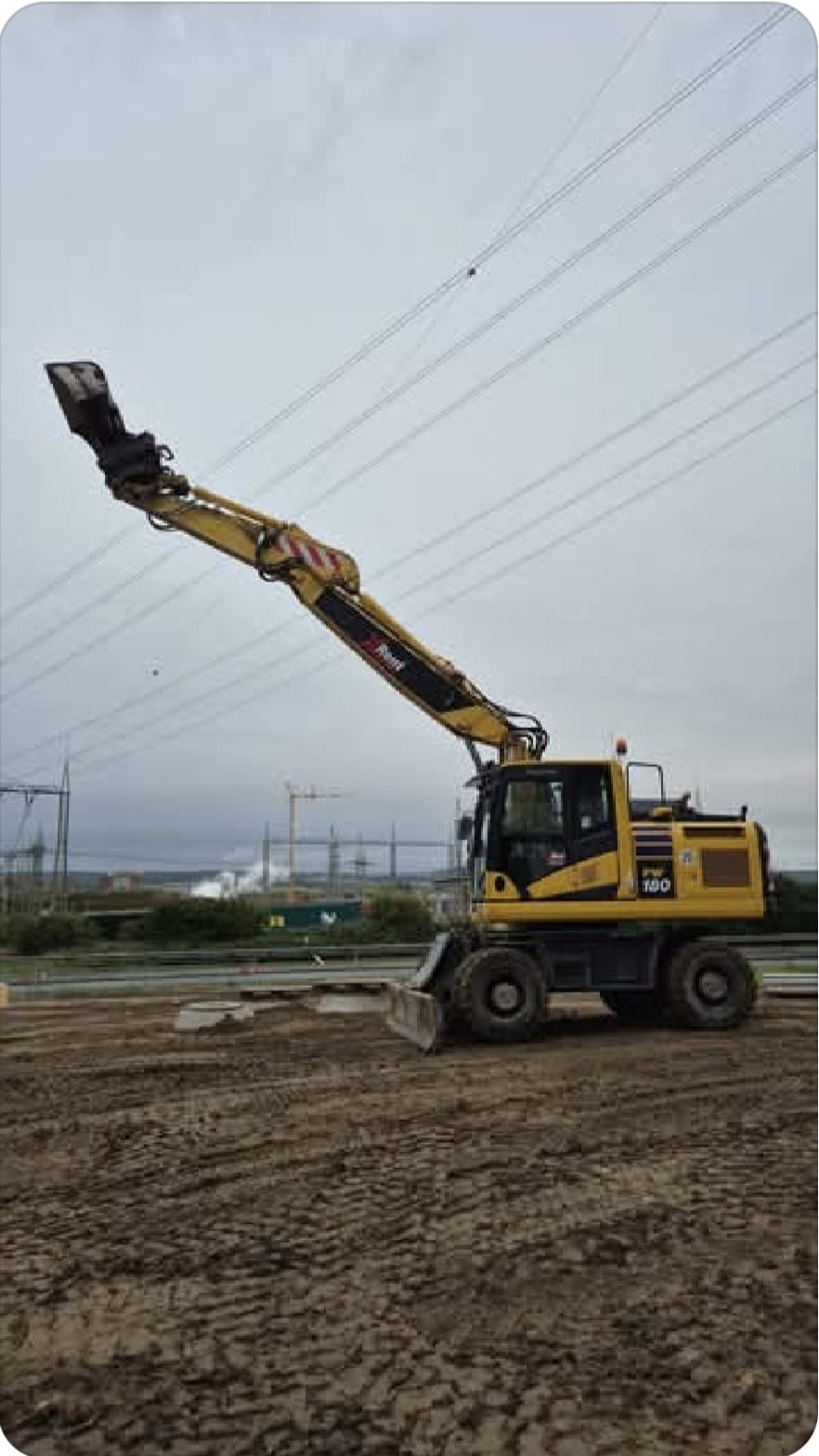 Qualifizierte Fahrer mit oder auch ohne Maschine unterstützen Sie bei der Fertigstellung Ihrer Baustelle.